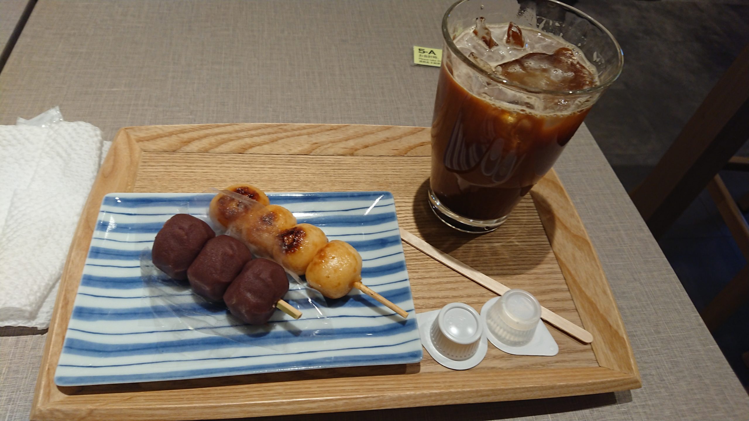 醤油味とこしあんのお団子とアイスコーヒーでチャージできました!